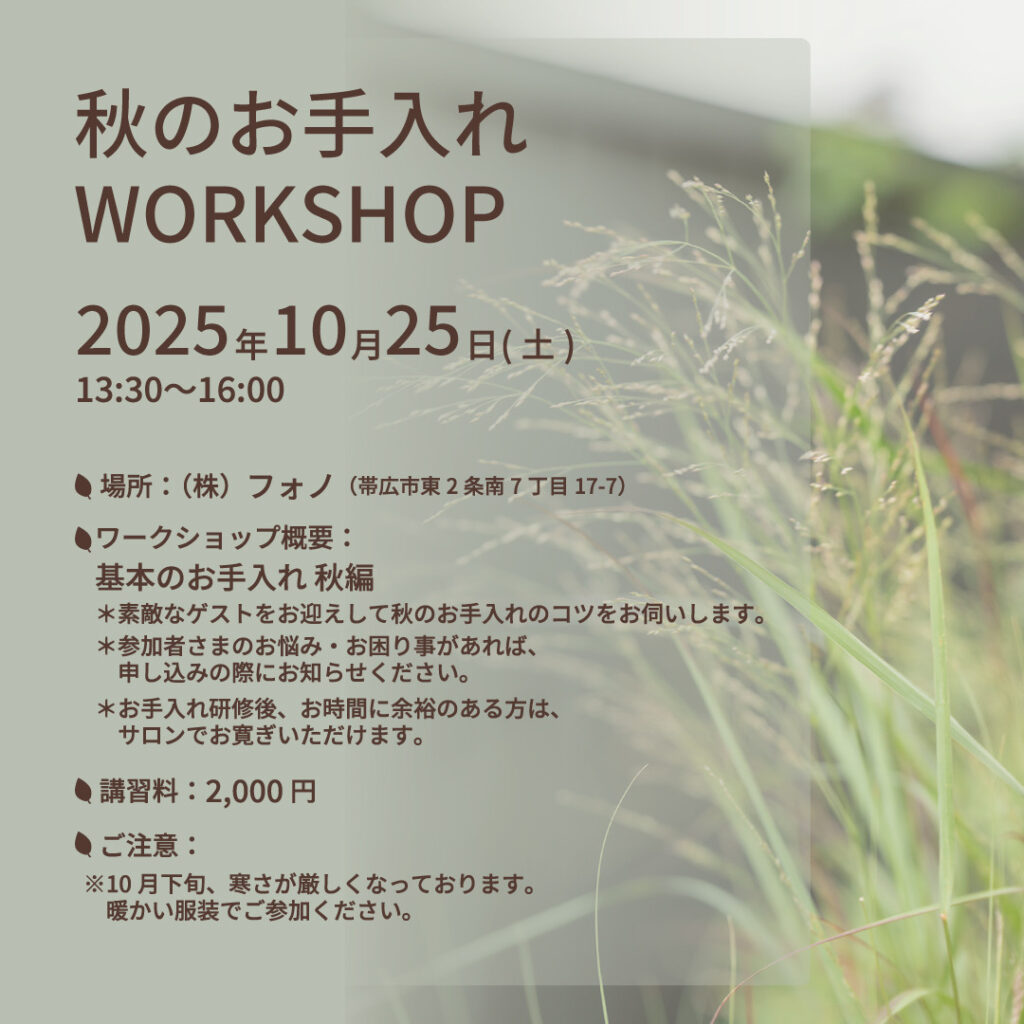 10月25日(土)13:30~16:00 (場所:株式会社フォノのモデルガーデンにて)
